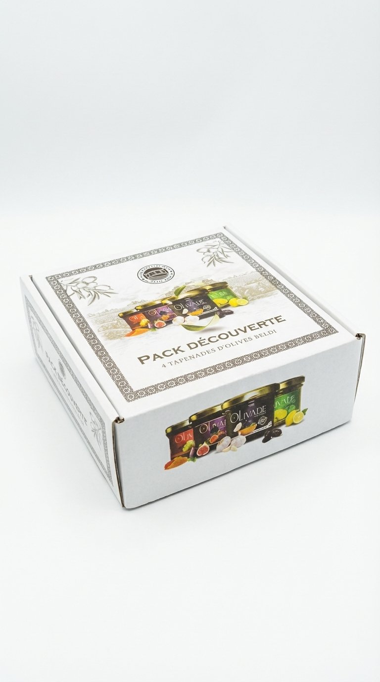 Préparée avec de la pâte d’olives noires beldi (naturellement maturées), de la confiture de figue, de l’huile d’olive extra vierge et de l’ail.